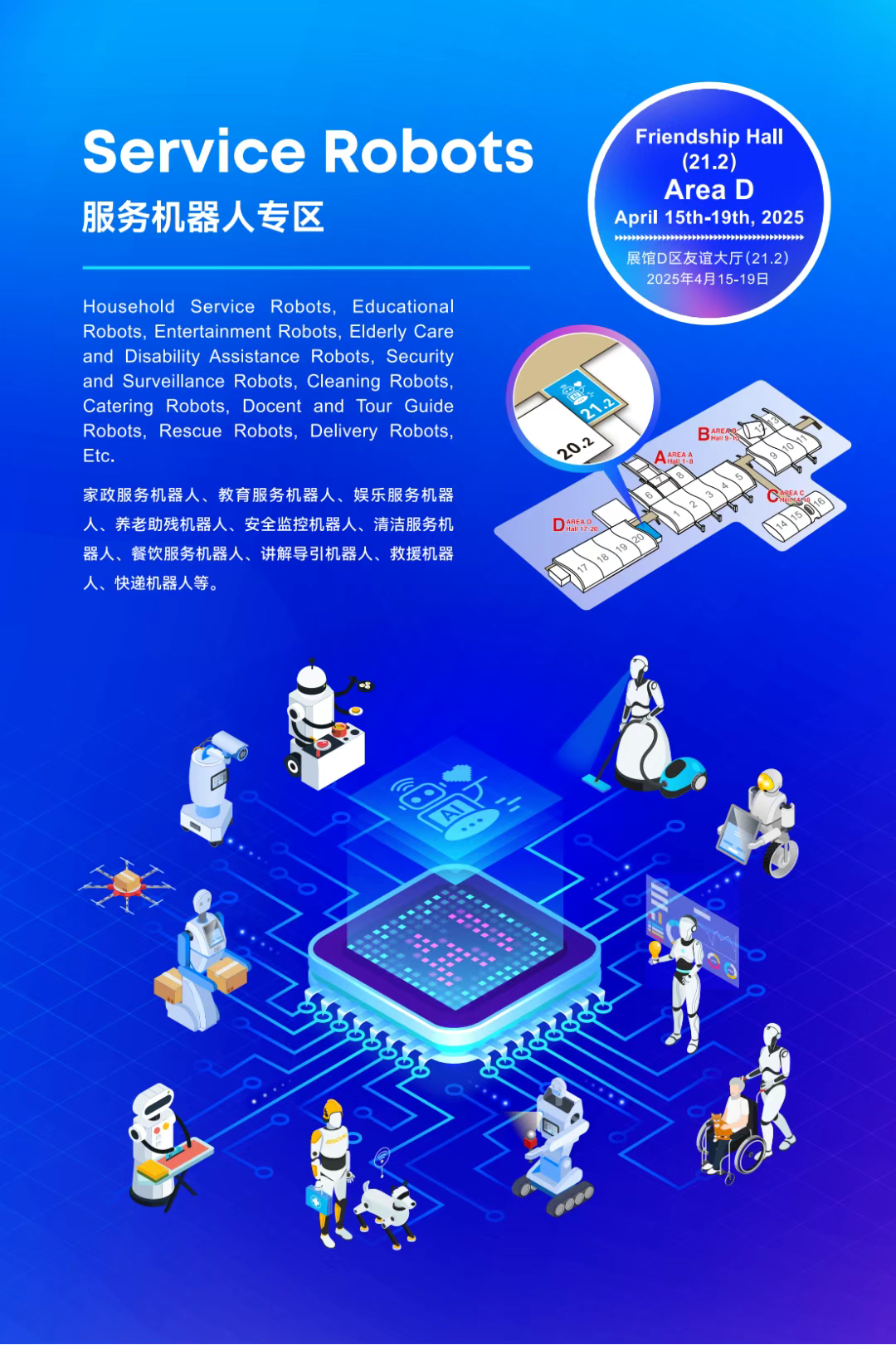 本届广交会首次在第一期展馆D区友谊大厅(21.2)设立服务机器人专区,集中展示我国人工智能发展最新成果。