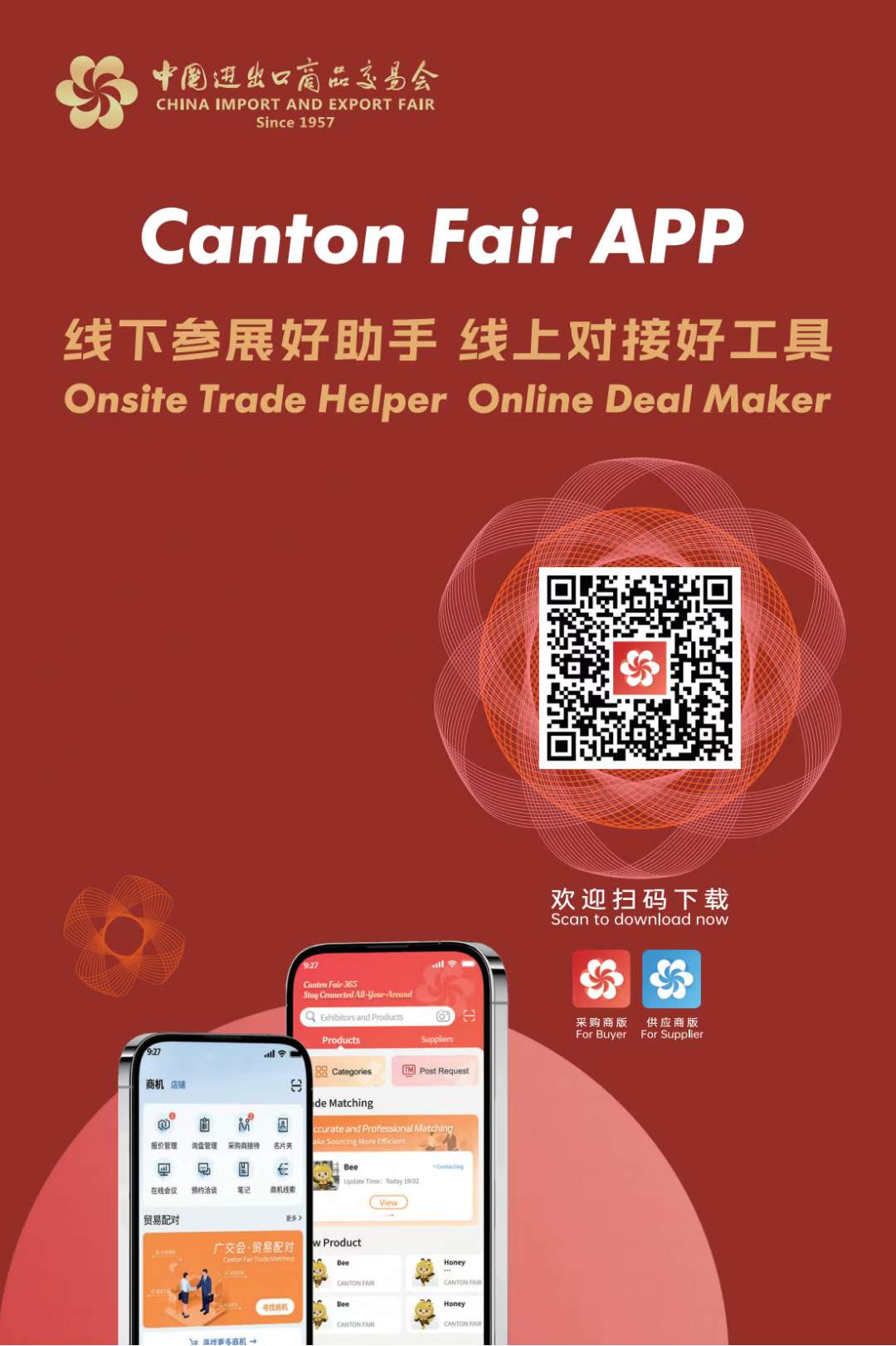 更多展品专区、展馆服务、交通指南等信息,请扫描二维码下载广交会APP,获取高清完整的导向手册内容!
